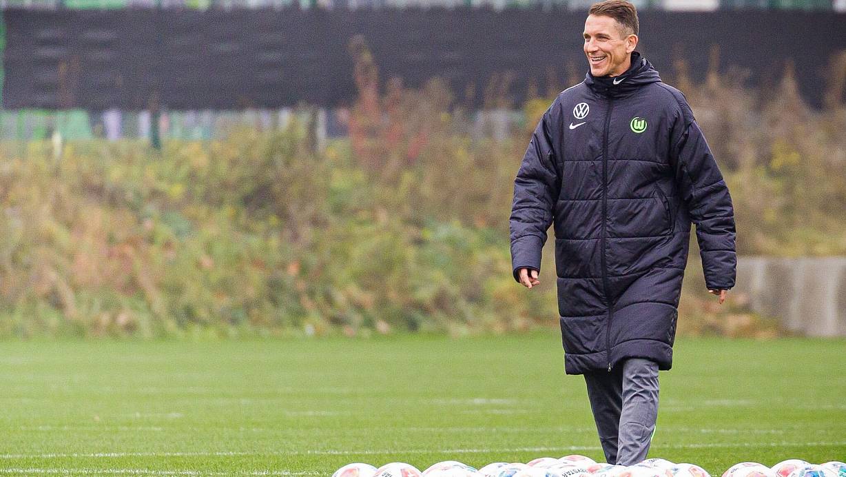 Einen Tag nach der Trennung von Paul Simonis: U19-Trainer Daniel Bauer trainiert erstmals die Wolfsburger Profis. | © Moritz Frankenberg/dpa