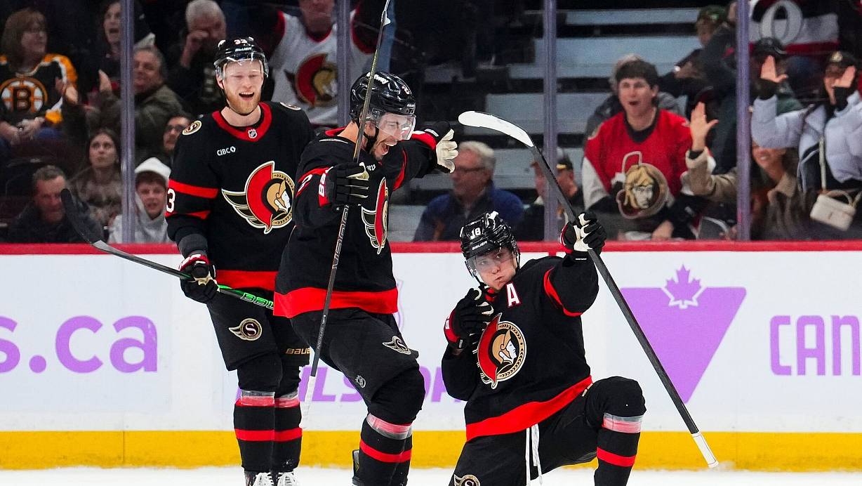 Eishockey-Nationalspieler Tim Stützle hat mit einem Doppelpack kurz vor Schluss die Siegesserie der Boston Bruins und ihres Trainers Marco Sturm beendet. Der NHL-Stürmer erzielte erst das 4:3 (55. Minute) und sorgte dann mit seinem zehnten Saisontor für den 5:3-Endstand (60.). Zuvor hatte der 23-Jährige schon das 1:0 durch Claude Giroux vorbereitet.