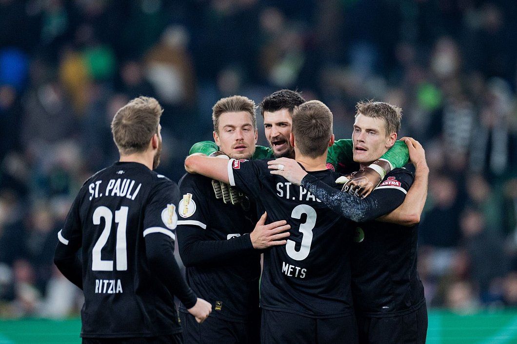Den ersten Sieg nach 90 Minuten seit dem 14. September feierten die Profis des FC St. Pauli ausgelassen mit ihren Fans. Nach der Party in der Kurve ging es im Kabinentrakt mit Musik des bosnischen Folksängers Mile Kitic weiter. «Wir sind wahnsinnig glücklich in die nächste Runde zu kommen. Die Jungs ziehen unglaublich mit, deshalb freut es mich so für sie», sagte St. Pauli-Trainer Alexander Blessin nach dem überraschenden 2:1-(1:0)-Erfolg bei Borussia Mönchengladbach und dem Einzug ins Viertelfinale des DFB-Pokals.