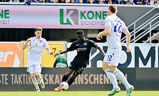 Gegen den KSC erzielt Sirlord Conteh den Führungstreffer für den SCP. An ihm besteht Interesse aus der Bundesliga, doch Conteh hat noch Pläne in Paderborn.