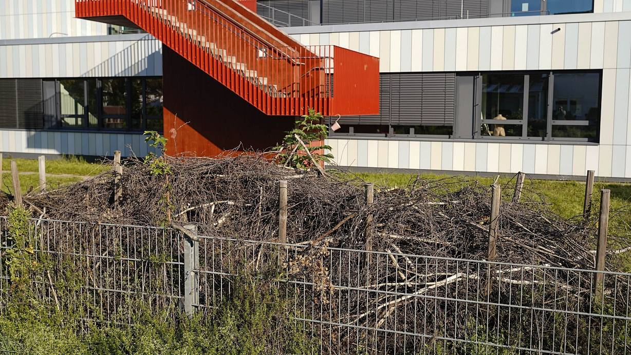 Man kann den Gehölzschnitt aber auch zu einer Hecke schichten, die als Abgrenzung dient - zum Beispiel an der Grundstücksgrenze. Dafür setzt man mehrere stabile Holzpfeiler in zwei Reihen in den Boden. Zwischen den Pfeilern sollte circa ein Meter Abstand sein. Die gesammelten Äste und Zweige schichtet man anschließend horizontal in Form einer Hecke auf. Wer will, kann die Hecke auch nach Belieben bepflanzen.