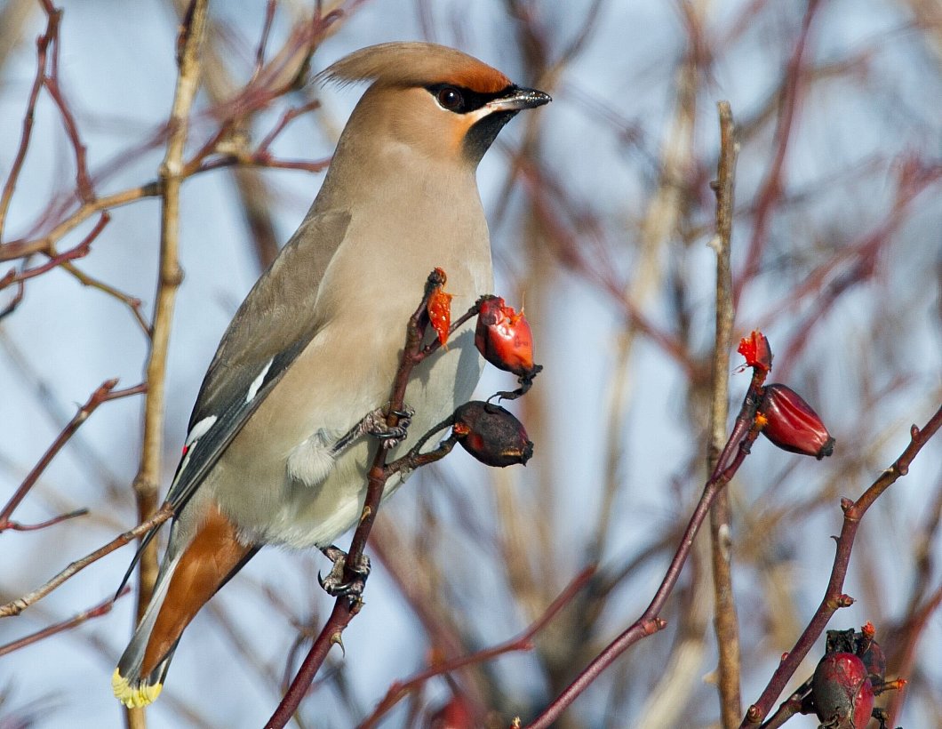Hagebutten, Schlehen und Wildobst im Garten sollte man nicht vollständig abernten. Die Früchte sind für Vögel ein willkommener Snack. Gesammelte Haselnüsse, Eicheln oder Bucheckern kann man Eichhörnchen an einer ruhigen, geschützten Stelle im Garten anbieten.